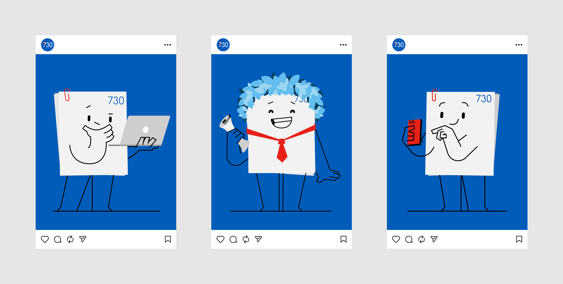 Alongside the videos, an official Instagram profile was launched. The character was adapted into more informative, serial social content: reminders, practical posts, and calls to action designed to guide people throughout the entire 730 season.